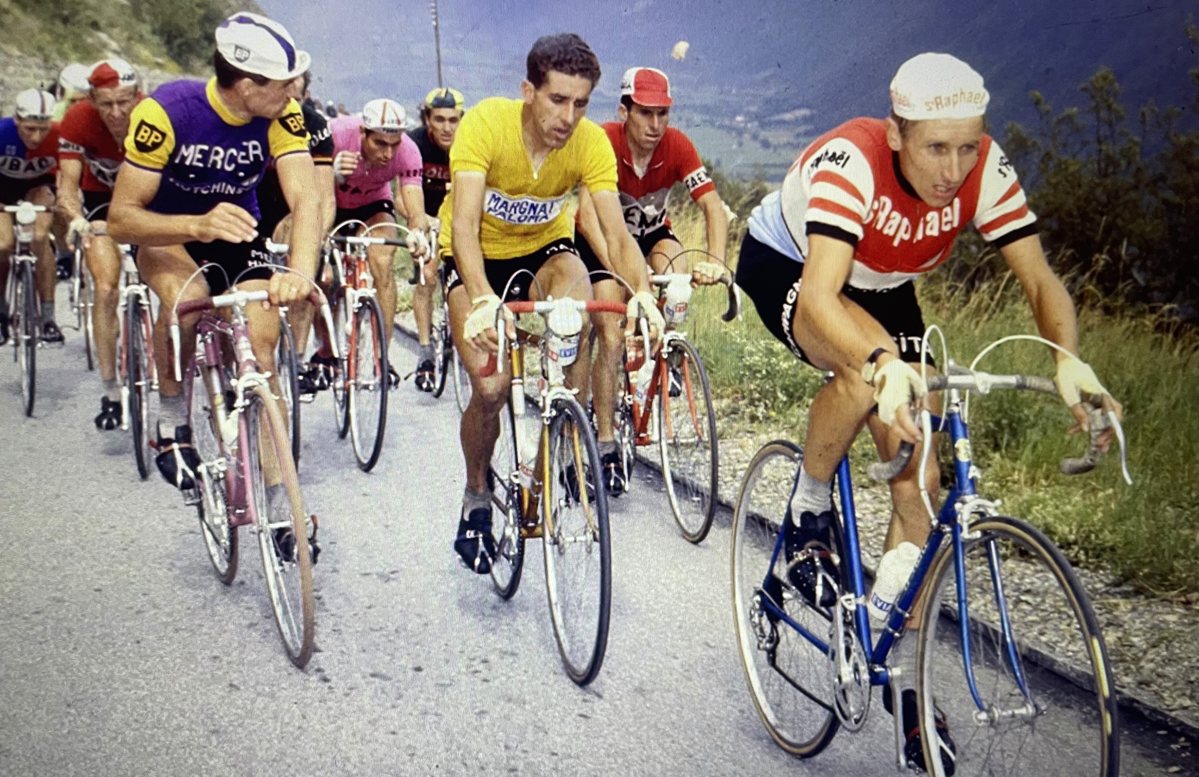 Her fra Tour de France på 1960 tallet, selvsagt alle uten hjelm