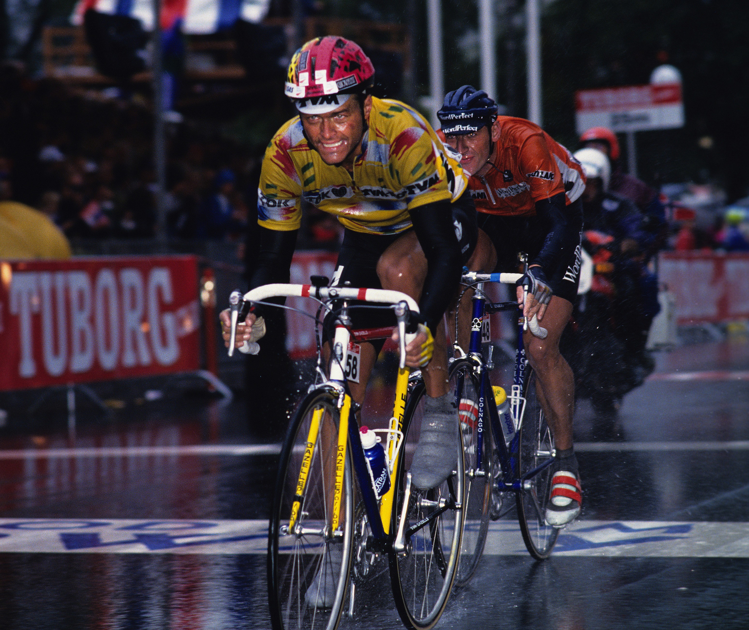 Men det må sies, at det var noen proffer som brukte hjelm. En av disse var Dag Otto Lauritzen. Som under VM i Oslo i 1993, kjørte nesten halvparten av rytterne med hjelm, kanskje mest fordi det var et ufyselig vær og fare for velt.