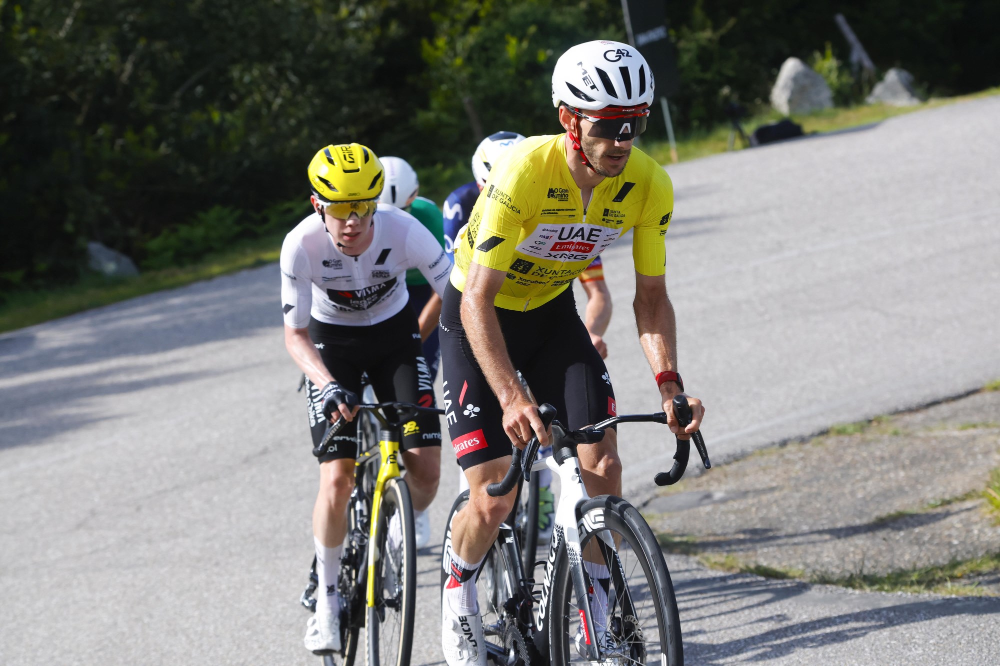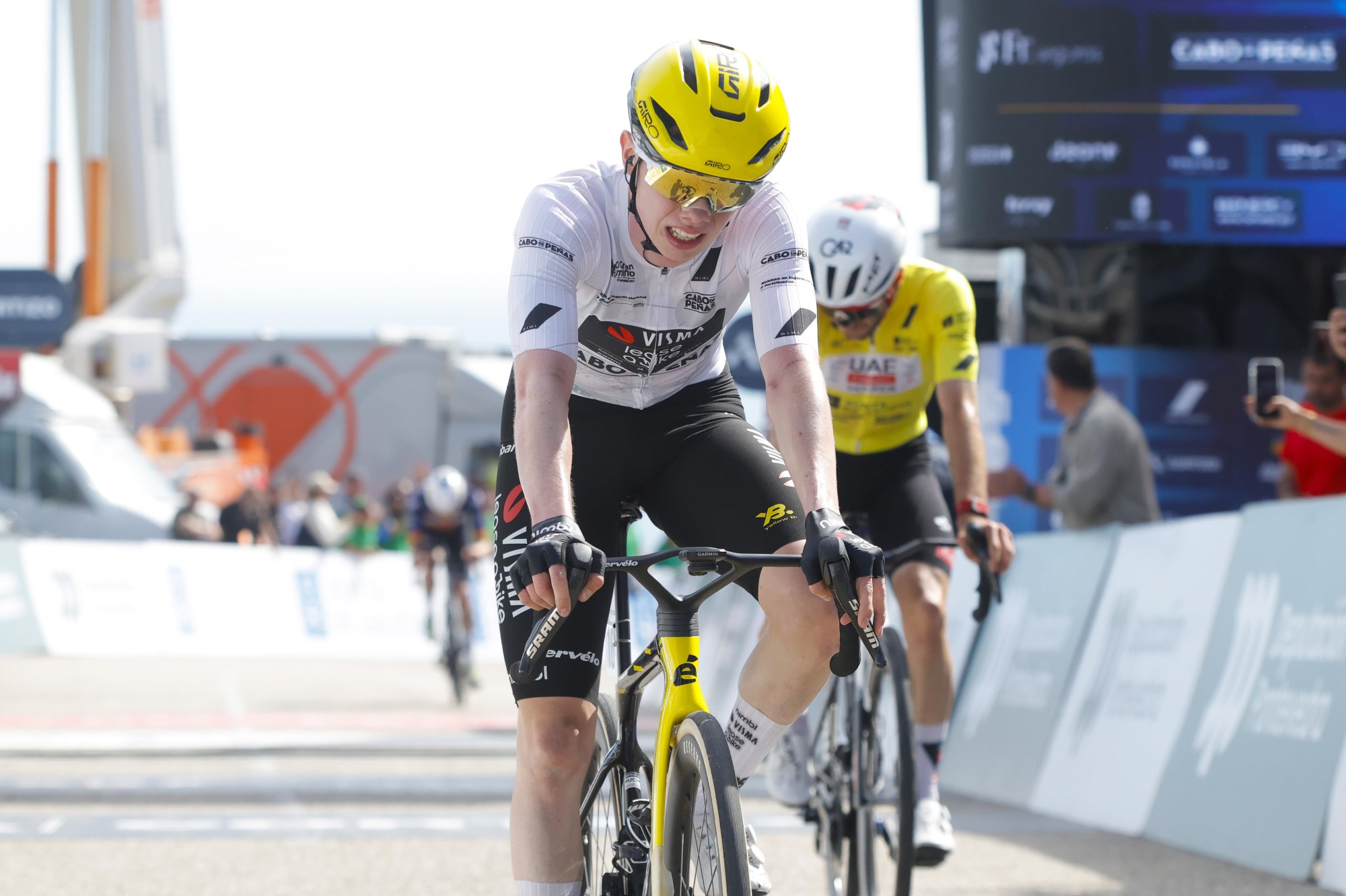 Nordhagen på hjul med Adam Yates i den siste bakken mot mål Foto.Corvos