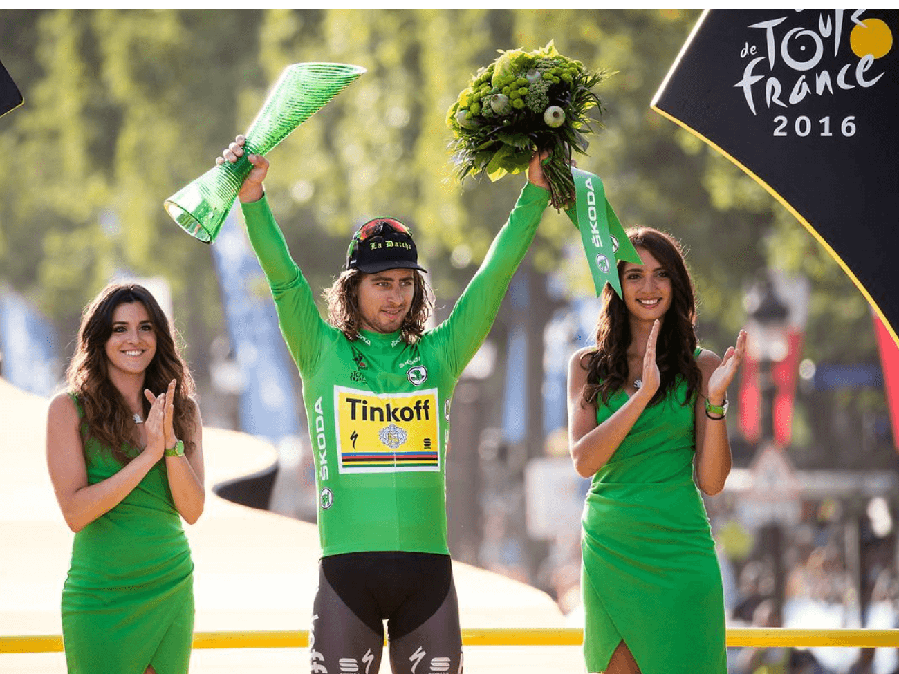 Peter Sagan på seierspallen under en etappe i Tour de France