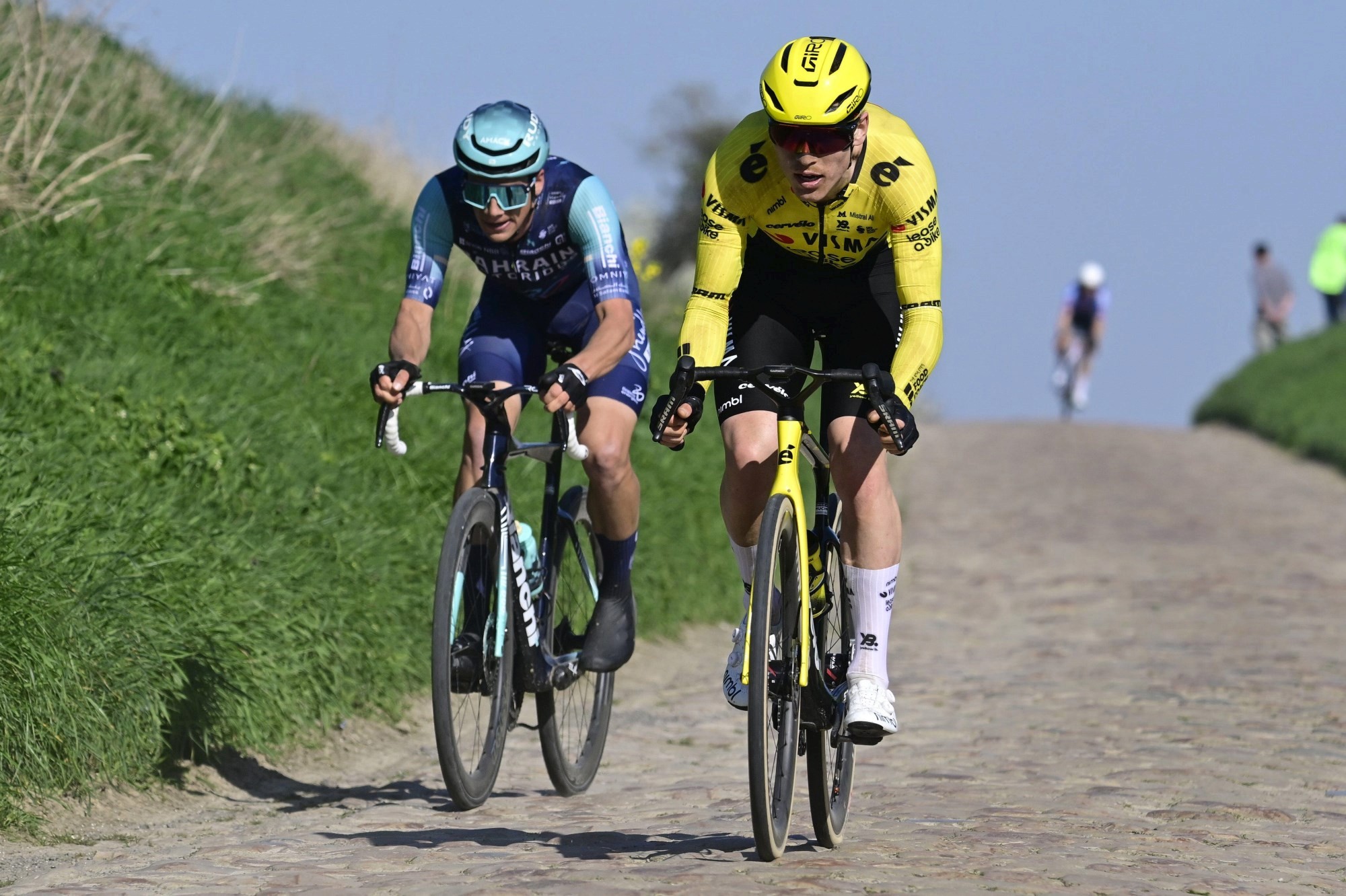 Ti kilometer før mål forsøkte Hagenes nok et rykk på brosteinene og skaffet seg raskt en luke til Segaert. Hovedfeltet lå da fortsatt rundt 30 sekunder bak.