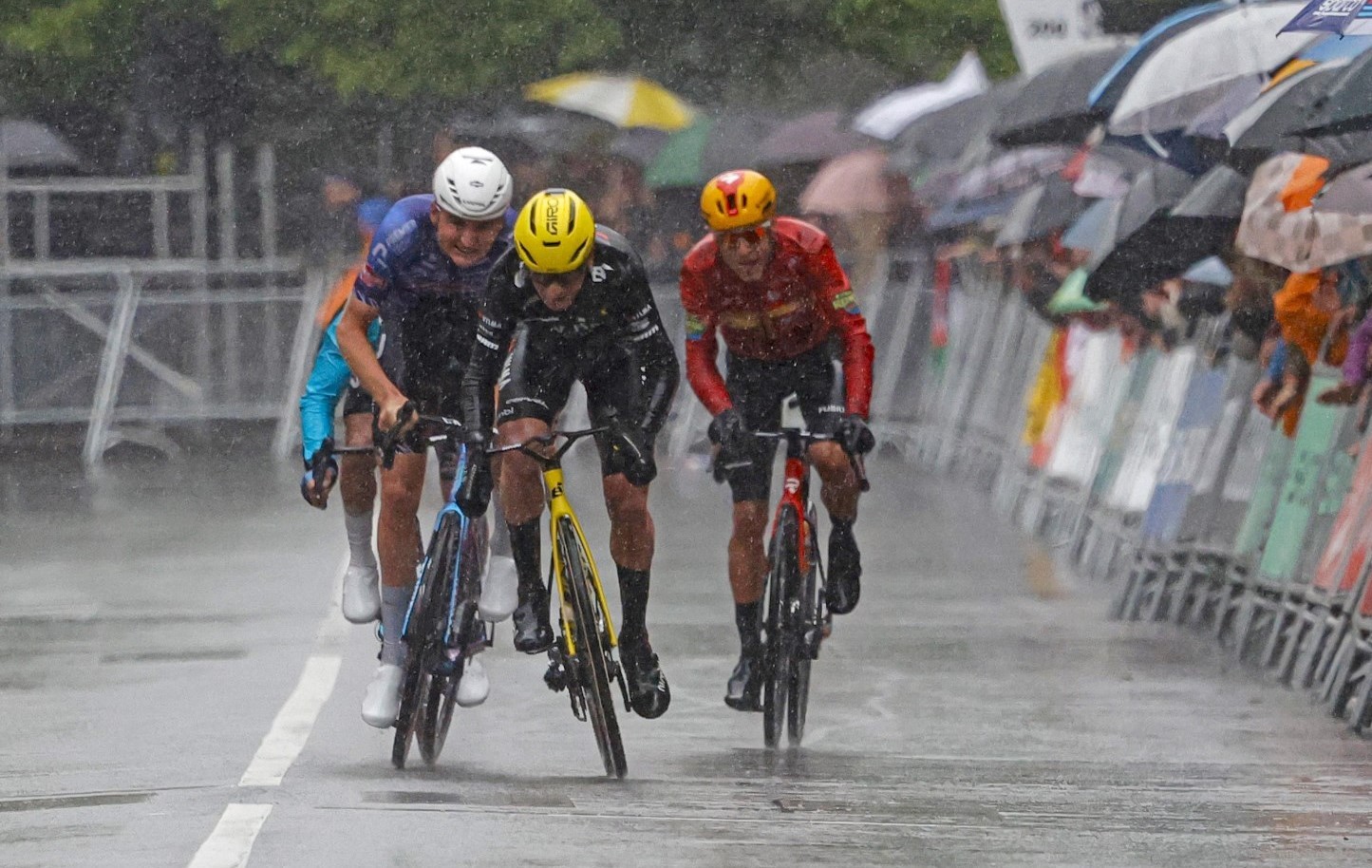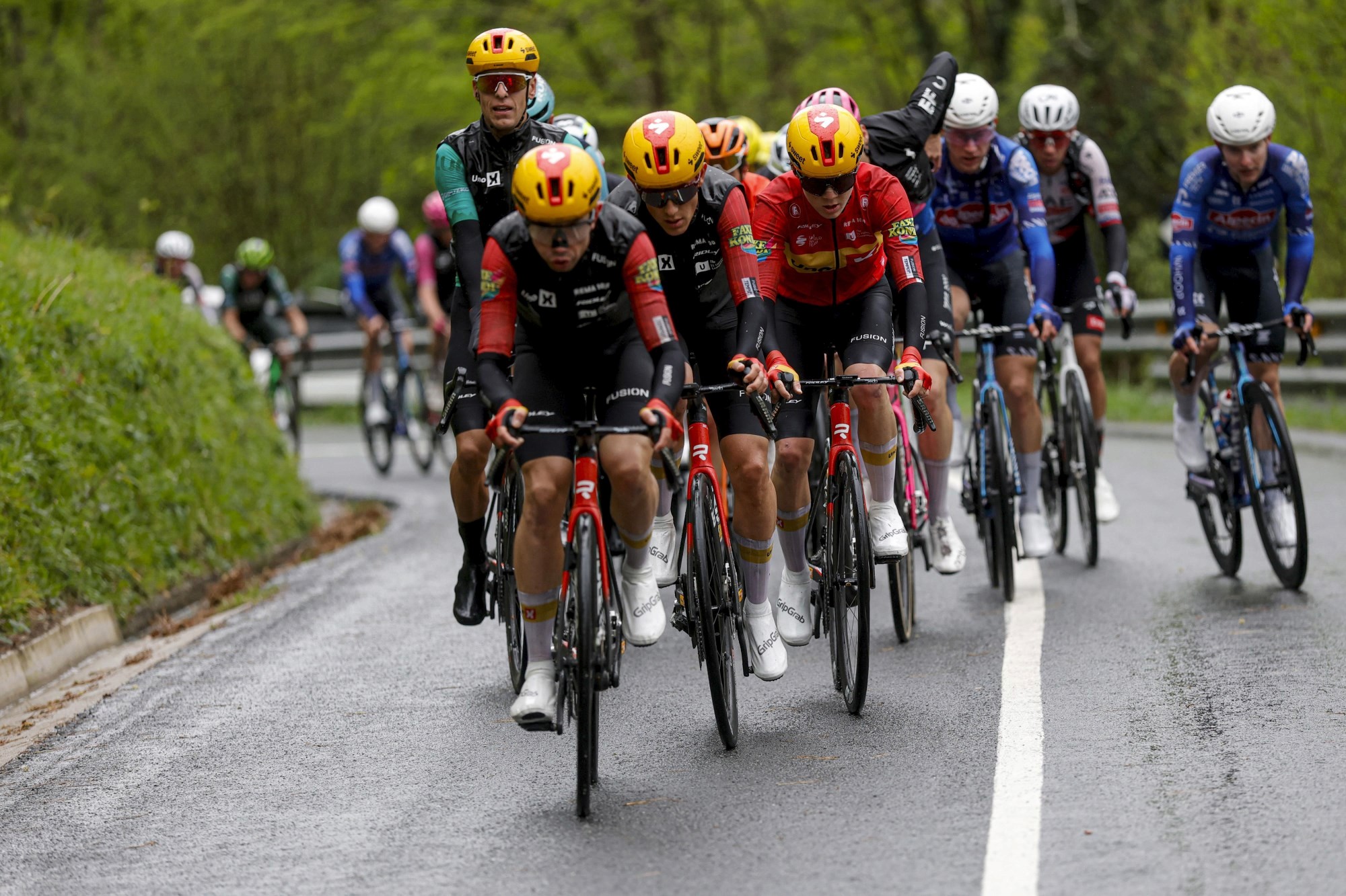 Med 30 km igjen var gruppen med Uno-X-rytterne, nå redusert til rundt 20 ryttere, bare 20 sekunder bak tetduoen bestående av Matias Skjelmose og Ben Healy.