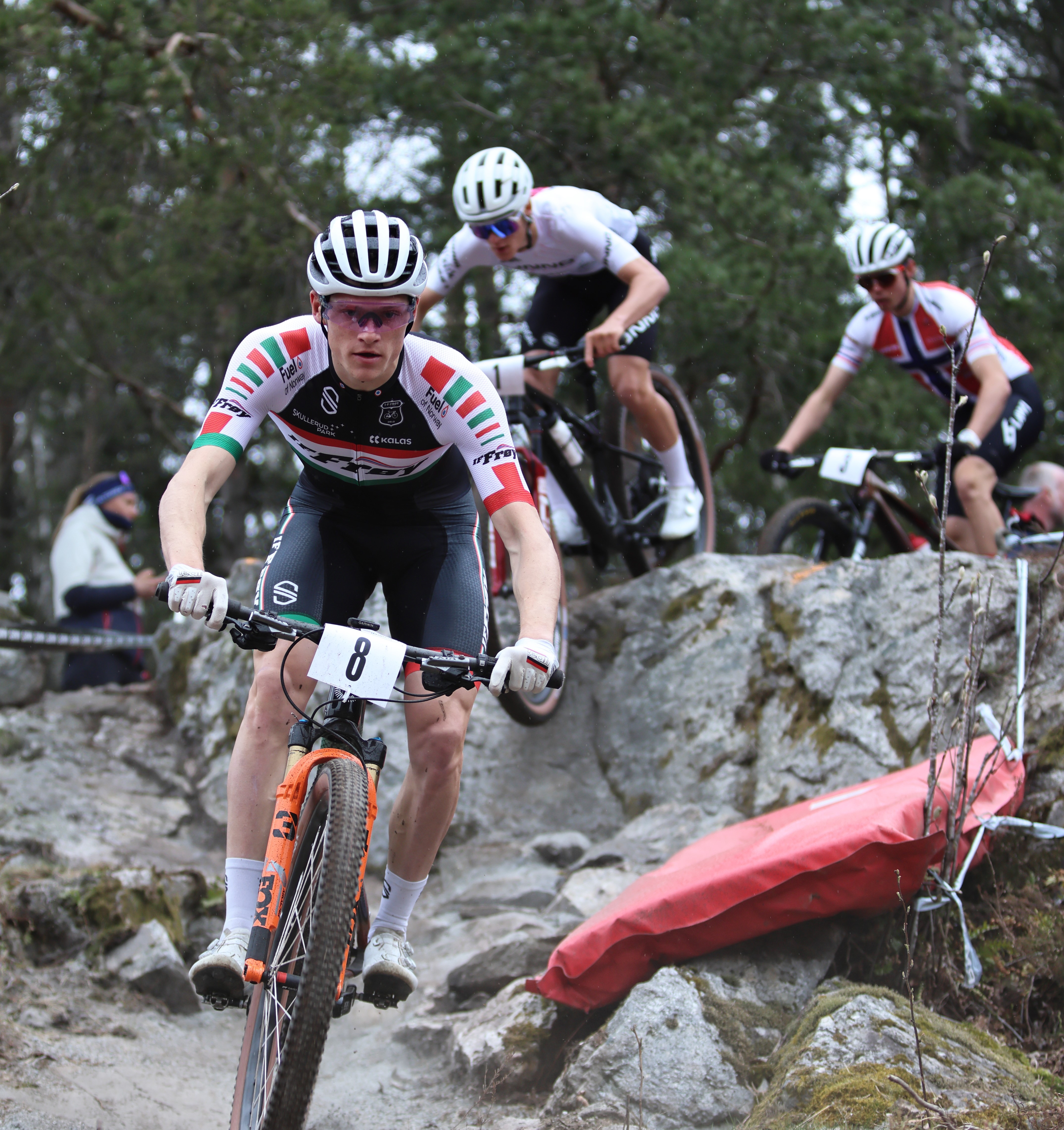 I herreklassen var det imidlertid en Frøy-rytter som tok seieren, foran to deltagere fra Tangen. Sondre Rokke er blitt en ekspert på XCO, og vant relativt klart foran Sivert Ekroll og William Handley.
